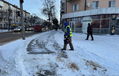 Житомир У Житомирі триває протиожеледна обробка та розчищення доріг і тротуарів від снігу