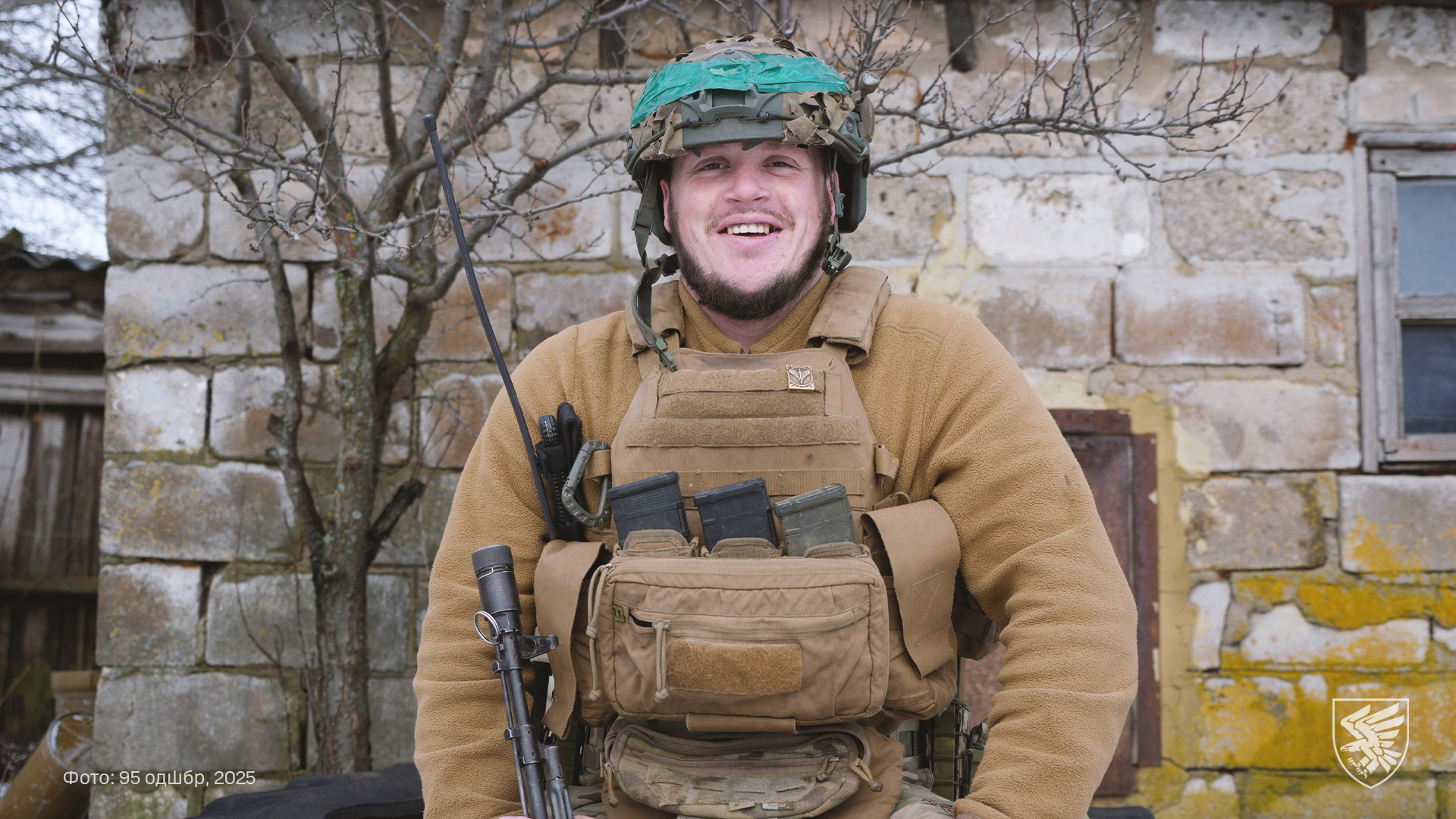 «Пульс стукає в голові, кров тече. Піднімаю голову — російський танк уже за кілька метрів. Глушиться. Бачу “Z“. Розумію: це кінець…» — згадує сержант 13-го окремого батальйону 95-ї окремої десантно-штурмової Поліської бригади Євгеній. Тоді їх урятував командир Захар Маковський — поранений, але незламний. Ця історія — про секунди між життям і смертю, про «синій скотч» під Яцьківкою та про кістяк армії, який тримає фронт, передає Відділення комунікацій 95 окремої десантно-штурмової Поліської бригади 8 корпусу ДШВ ЗС України.