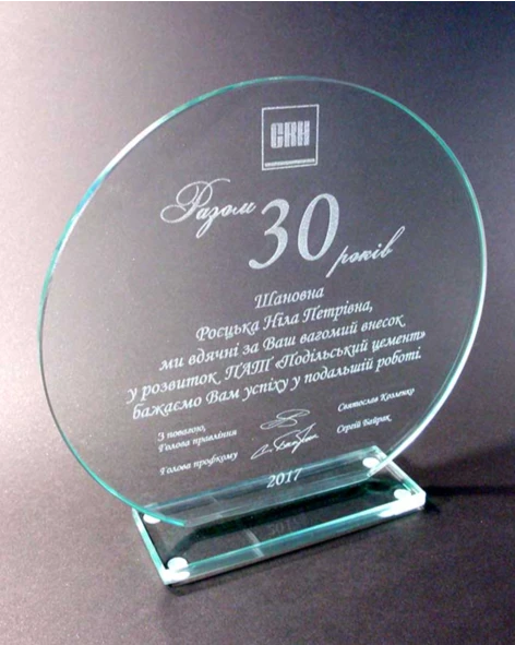 - Вислуга років (Long Service Awards): Нагорода за 5, 10, 15 років роботи в компанії. Це знак поваги до лояльності та стабільності. Скло тут символізує прозорість стосунків та міцність зв'язку.