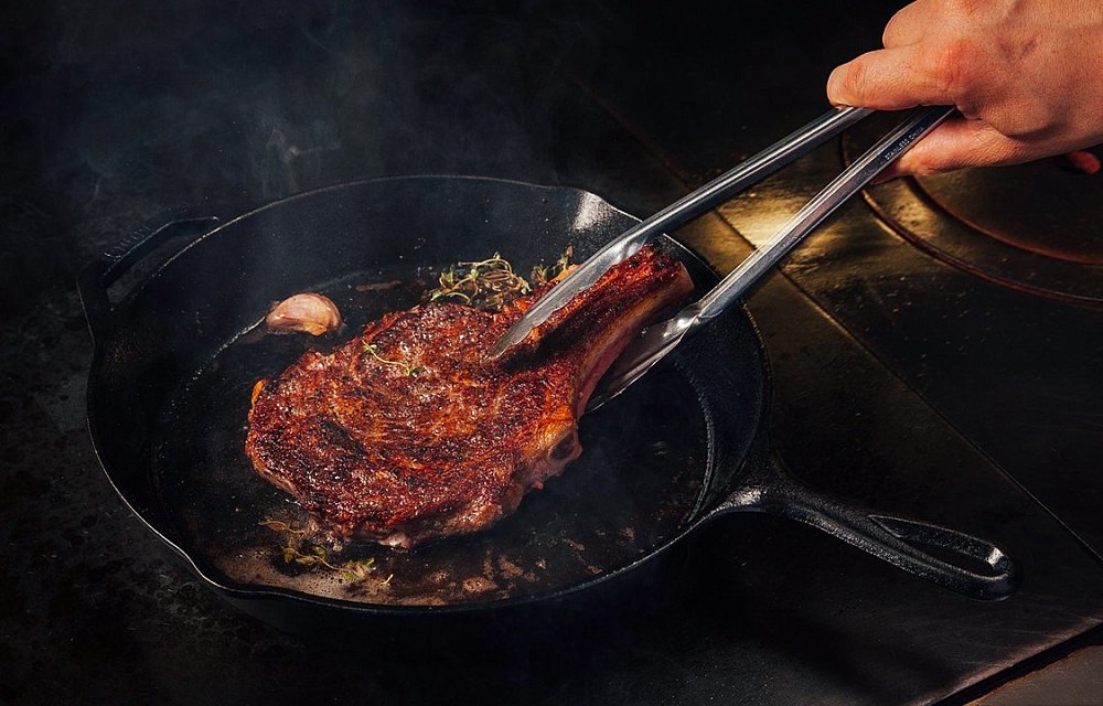 Для приготування Стріплойна не потрібні складні техніки. Стейк достатньо заздалегідь дістати з холодильника, щоб він прогрівся до кімнатної температури, приправити сіллю та свіжомеленим перцем і обсмажити на добре розігрітій поверхні. Висока температура дозволяє швидко створити рум’яну скоринку, зберігаючи соковитість всередині. Після смаження важливо дати м’ясу кілька хвилин для відпочинку — цей етап напряму впливає на фінальну ніжність і смак.