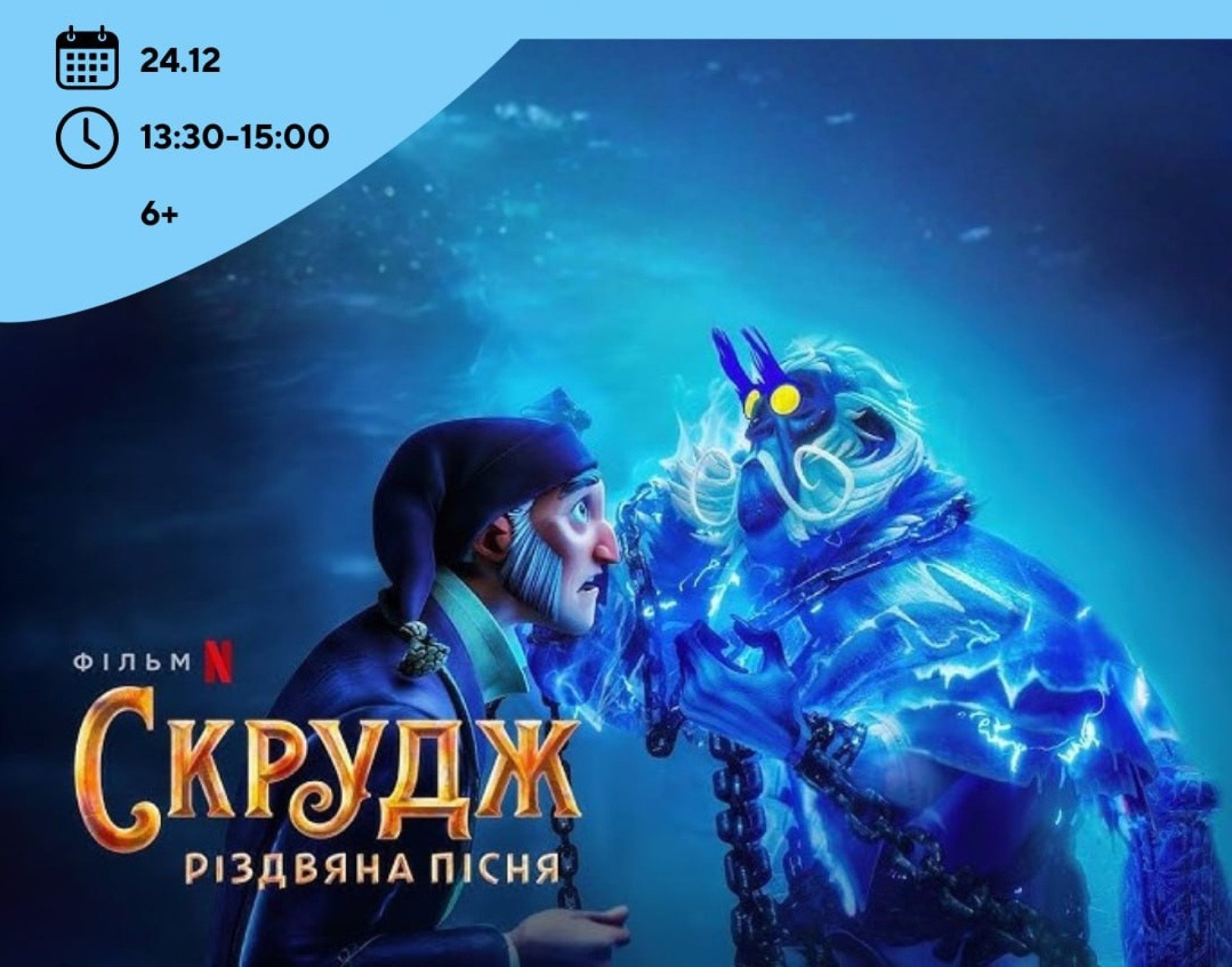 Фільм «Скрудж: Різдвяна пісня» розповідає історію чоловіка, який уникає радості, теплих емоцій і різдвяних традицій. Завдяки зустрічам із духами Різдва герой поступово змінюється, відкриває серце до співчуття, турботи й добрих вчинків. Організатори зазначають: ця історія зрозуміла дітям і водночас дає прості, але важливі сенси — про емпатію, щедрість і силу змін.