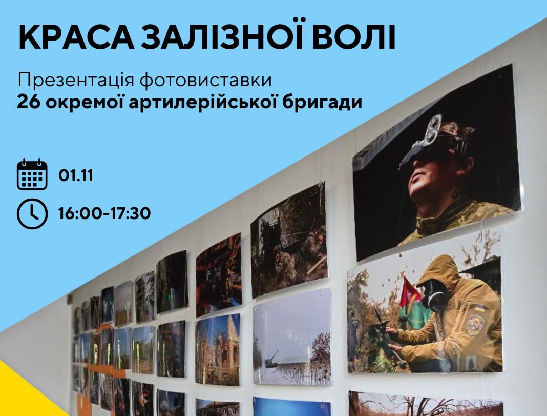Сила духу, відвага і надія, що тримає навіть під обстрілами. У Житомирі презентують фотовиставку «Краса залізної волі», створену військовослужбовцями 26 окремої артилерійської бригади.