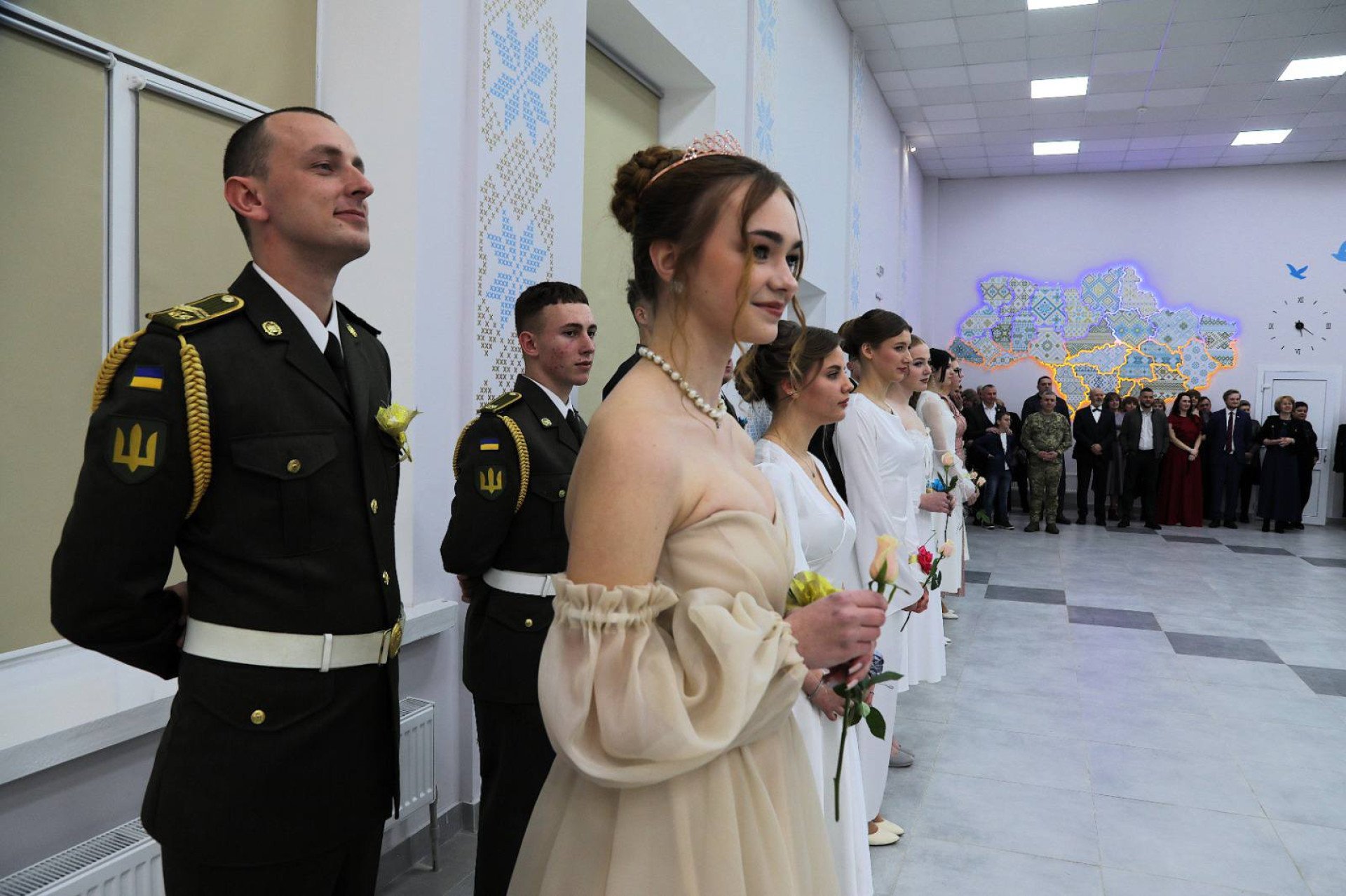 Особливої урочистості вечору додав полонез, у якому на паркеті зійшлися ліцеїсти й ліцеїстки Станишівської громади разом із курсантами та курсантками військового інституту. Танок став символом зустрічі поколінь, де ніжність поєднується з мужністю, а шляхетність — з любов’ю до України.