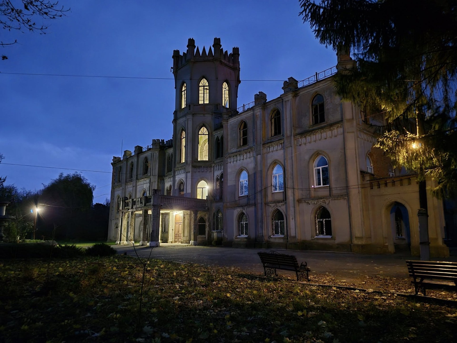 Тепер усі чотири поверхи ввечері та вночі освітлюються зсередини, підкреслюючи велич цієї неоготичної споруди, адже стрімке спрямування вікон угору посилює цей ефект.