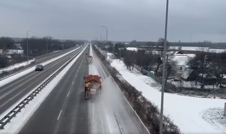 Сніжний ранок вивів на дороги державного значення Житомирщини комбіновані дорожні механізми. Техніка працює з 5-ї години ранку. Спочатку превентивно обробили протиожеледними матеріалами потенційно небезпечні місця: підйоми, спуски, мости та естакади.