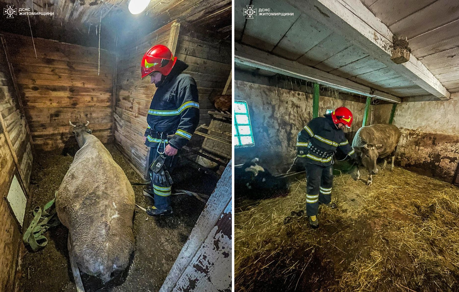 29 січня до рятувальників надійшло повідомлення, що необхідно дістати корову, яка провалилась у приватному домоволодінні в с. Краївщина Житомирського району.