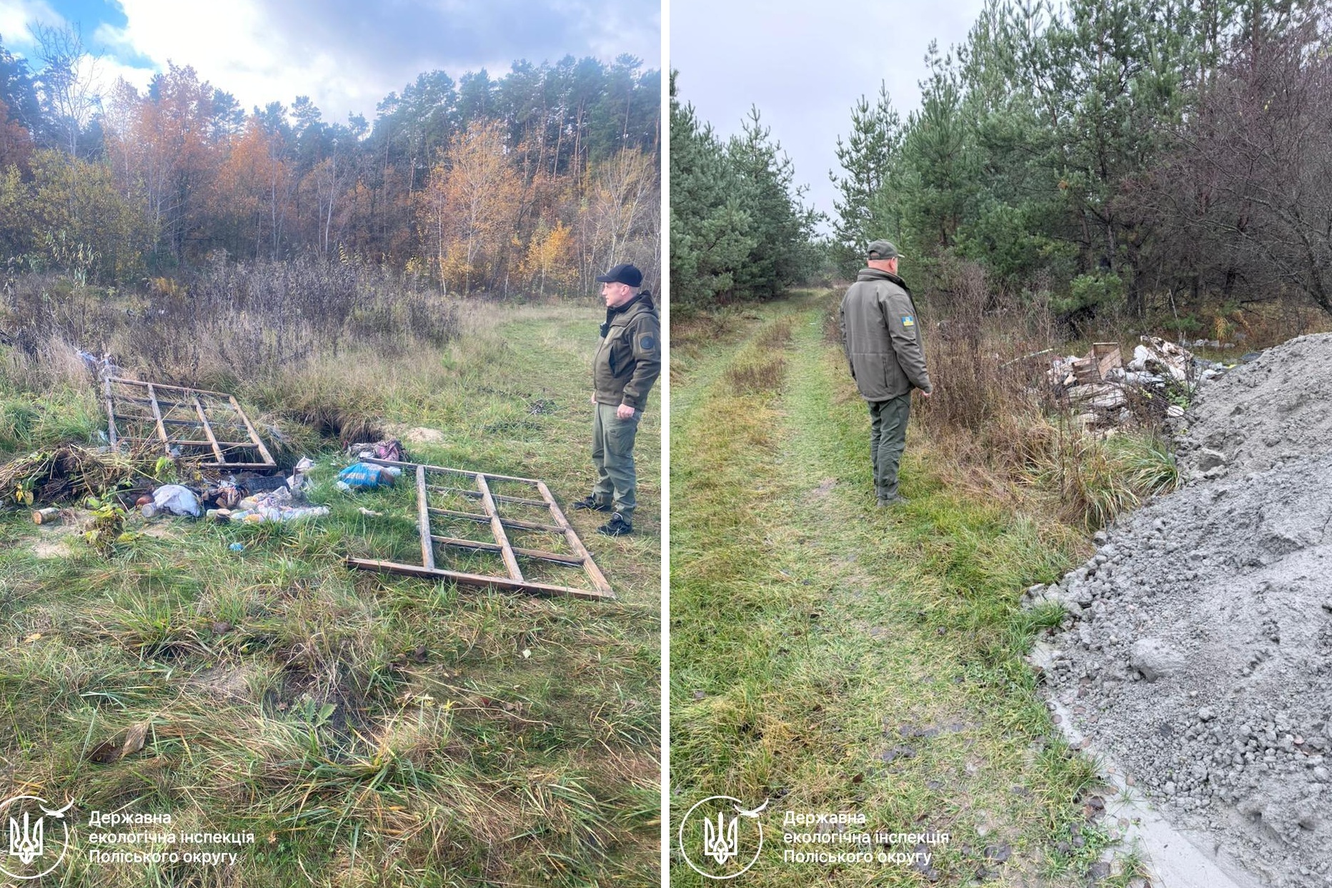 Крім того, за межами села Світин, обабіч об’їзної дороги міста Житомира, інспектори зафіксували факт влаштування несанкціонованого звалища будівельних відходів (бита цегла, залишки будівельних сумішей та інші фрагменти).