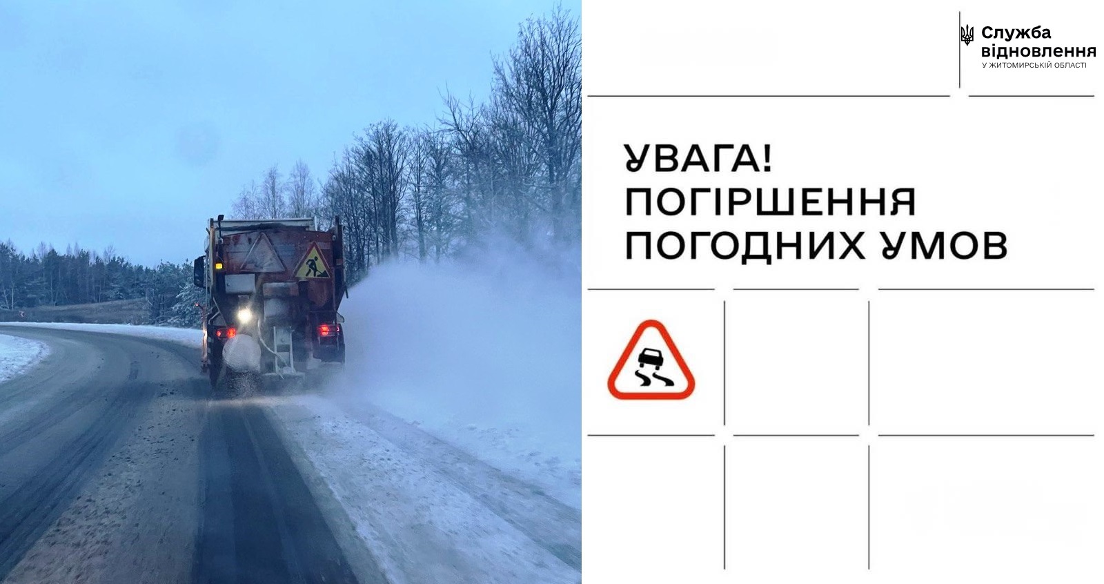 На Житомирщині тріскучі морози відступатимуть, але ситуацію на дорогах ускладнять снігопади.