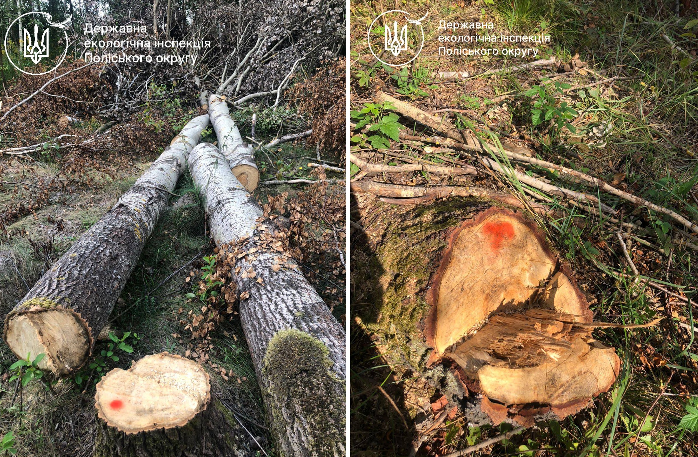 Державні інспектори з охорони навколишнього природного середовища Поліського округу здійснили виїзд на місце, зазначене у зверненні. На земельній ділянці площею близько 3,2 га було встановлено факт незаконної порубки 286 дерев різних порід.