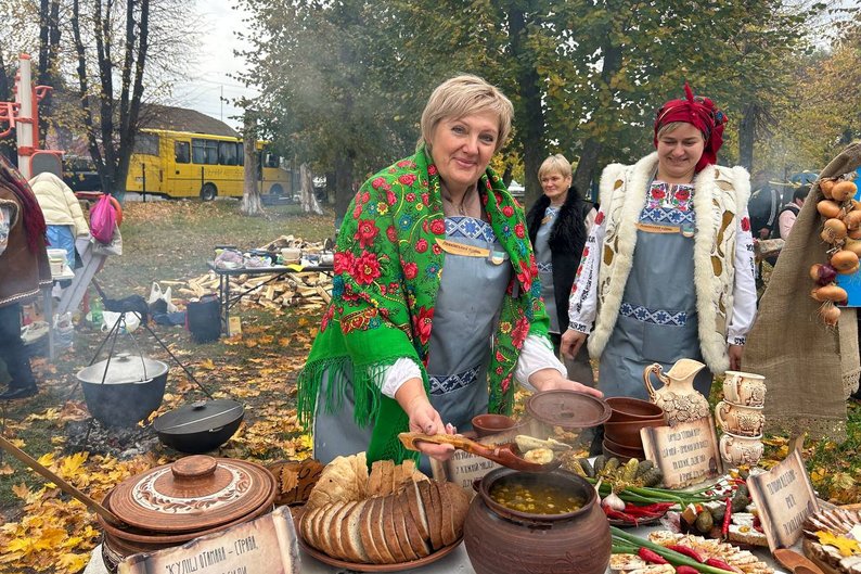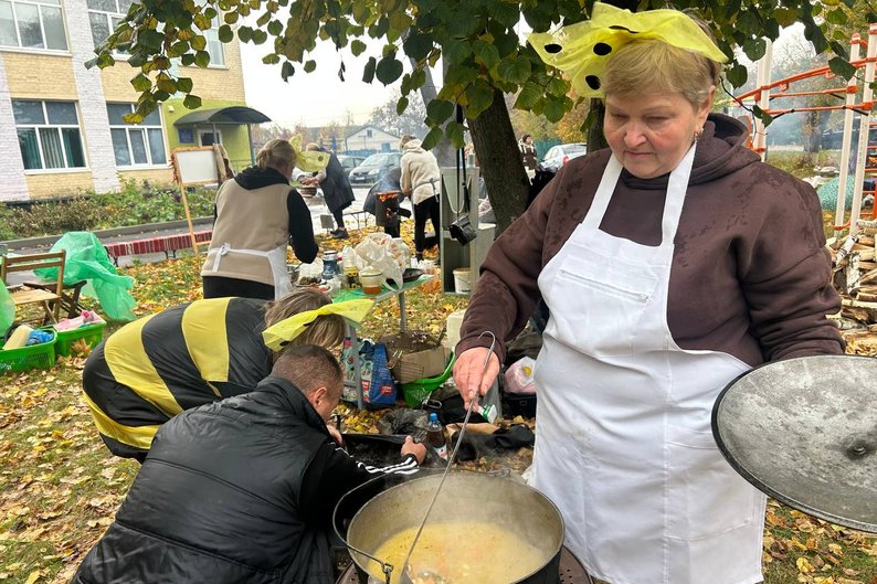 Старовинну українську рибну юшку, яку готували козаки, допомагала готувати Леся Погорелова, заступниця директора Левківського ліцею.