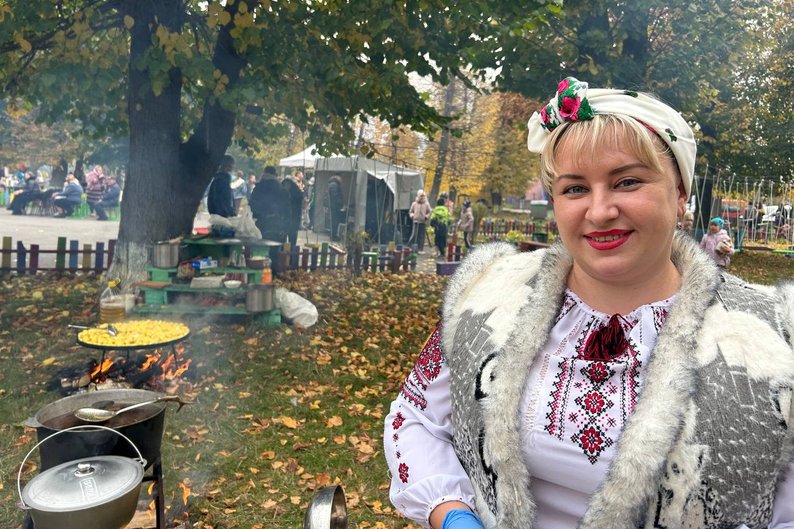 "Спробувала банош, дуже смачний, із домашнім сиром і шкварками. Дуже сподобався, смак, як на Прикарпатті. Я оцінюю страву і за смаком, і за оформленням — дивимося, як оформлений стіл, як санітарні умови дотримані, яка подача, які тарілки, як подають", — сказала Ірина.