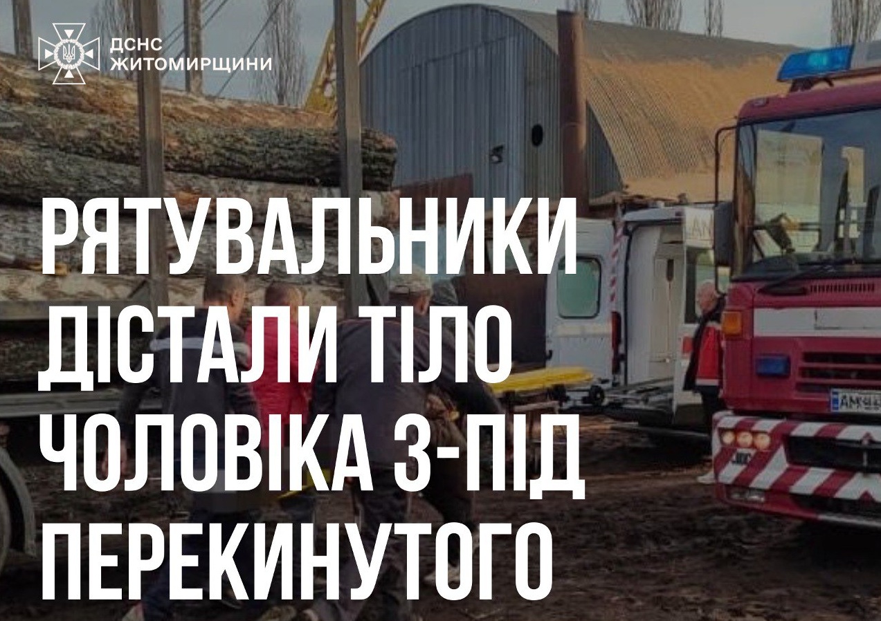 Трагічний інцидент стався 6 листопада вдень у Коростені. Під час навантаження дров на лісовоз перекинувся кран, під конструкціями якого опинився кранівник.