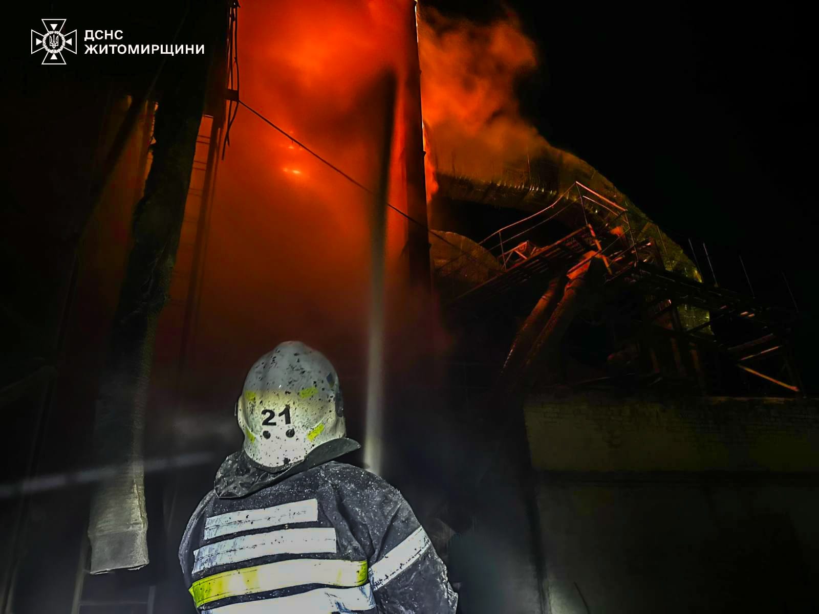 Фахівці ДСНС проливали водою установку поки здійснювався аварійний скид зерна.
