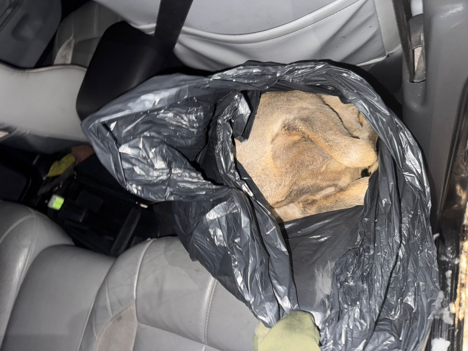 Під час перевірки автомобіля в багажному відсіку було виявлено тушу незаконно впольованої косулі, мисливський карабін «Ruger» з глушником та тепловізійним прицілом.