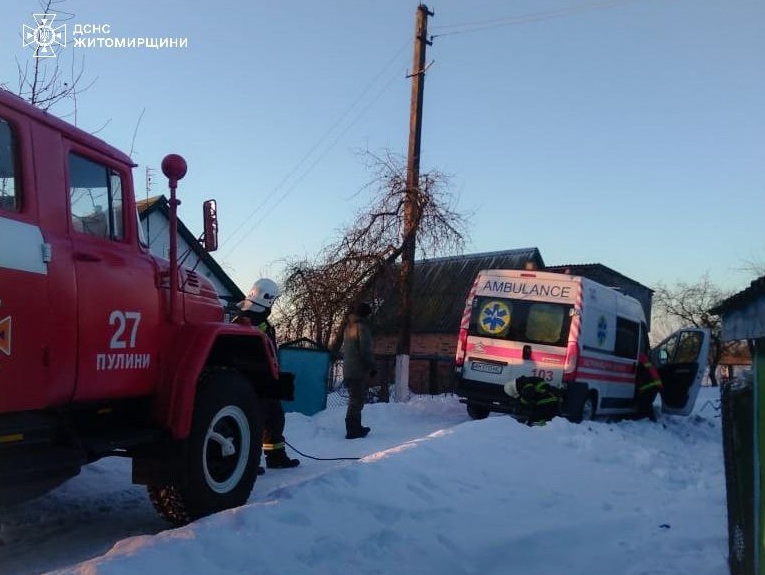03 лютого до Служби порятунку «101» надійшло повідомлення про необхідність надання допомоги медикам. Їхня автівка яких застрягла на слизькому узбіччі. Пригода сталася у с. Курне Житомирського району.
