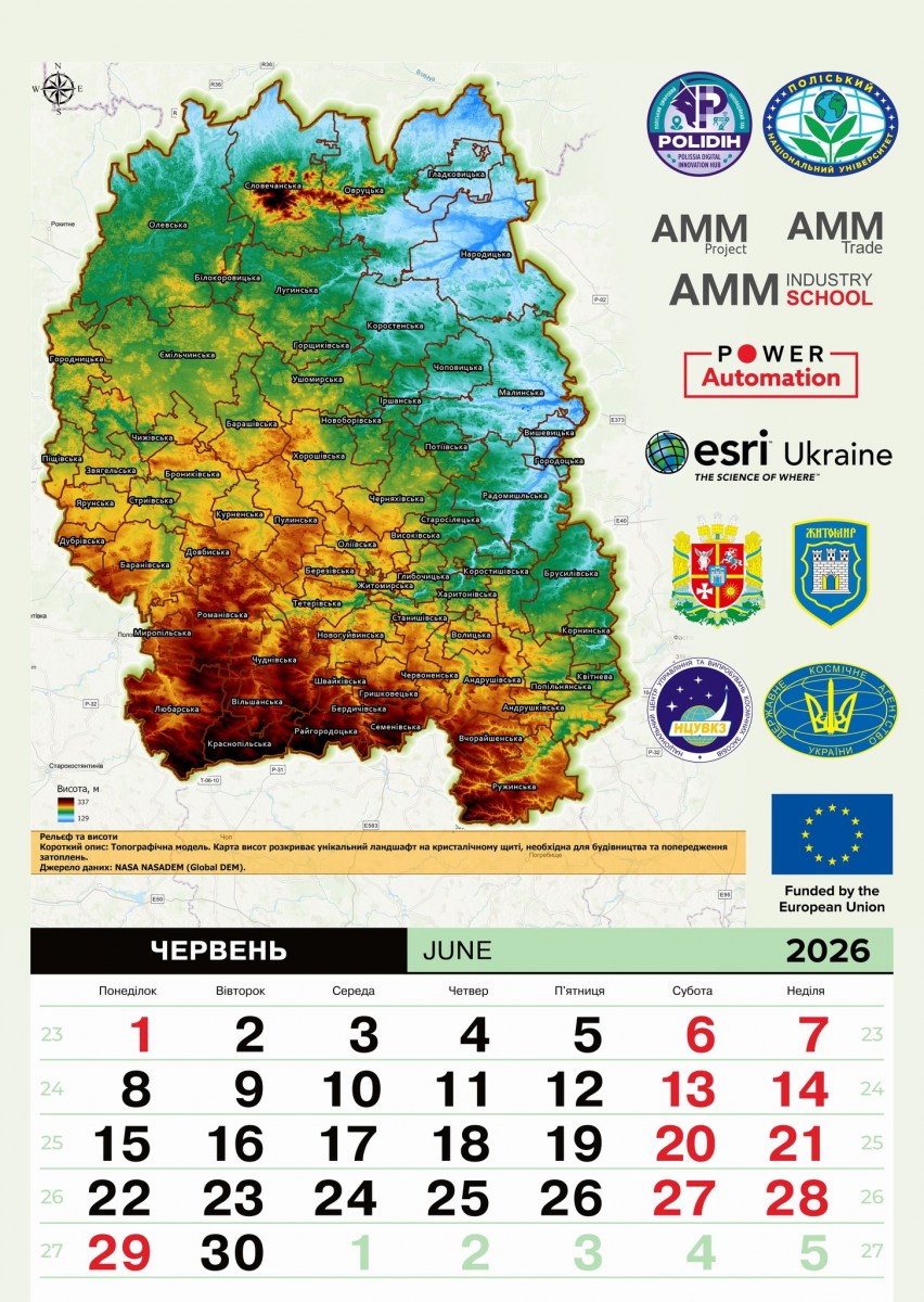 Команда Поліського цифрового інноваційного хабу «POLIDIH», який вже рік функціонує у Поліському національному університеті, підготувала цифровий календар-атлас Житомирської області.