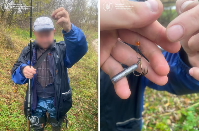 "4 листопада під час проведення рейдових заходів з охорони водних біоресурсів на річці Тетерів, у районі Паперової фабрики (м. Житомир), державні інспектори Поліського екологічного контролю виявили громадянина, який здійснював лов риби забороненим знаряддям – потрійним гачком без блешні, природної чи штучної принади. Використання такого знаряддя лову заборонене у даний час і в цьому місці", - йдеться в повідомленні.