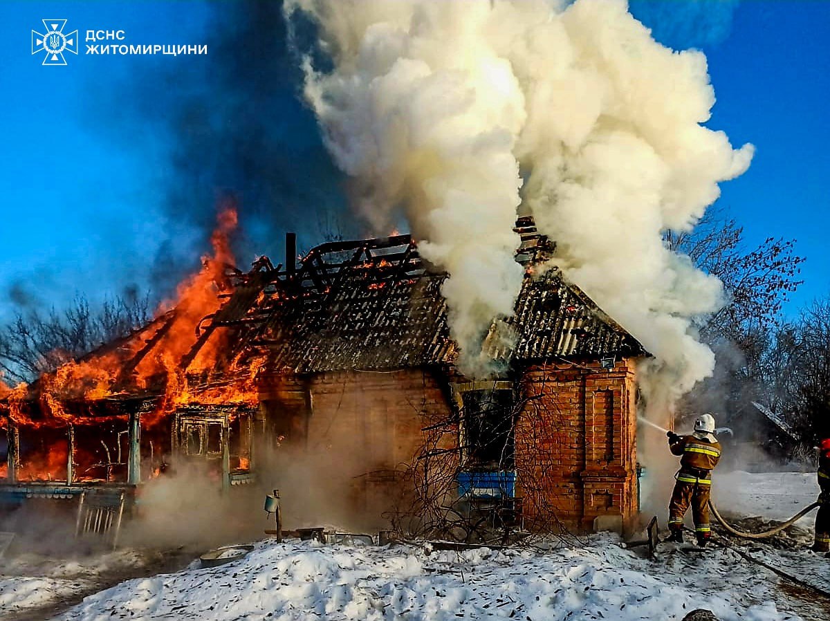 1 лютого вранці до Служби порятунку «101» надійшло повідомлення про пожежу в приватному дерев’яному житловому будинку в с. П’ятка Чуднівської територіально громади Житомирського району.