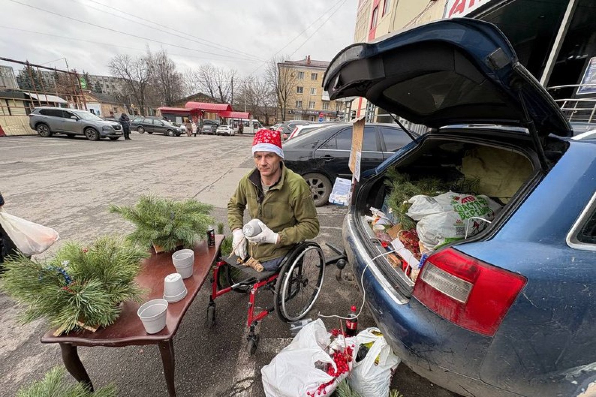 За словами ветерана російсько-української війни, цього року він одразу на своїй сторінці у соціальній мережі оголосив таку різвяно-новорічну акцію за місяць до Різдва, аби люди змогли купувати у нього різдвяні композиції та встигли переказати гроші, натомість за них він зможе створювати хвойні композиції і просто даруватиме їх містянам.