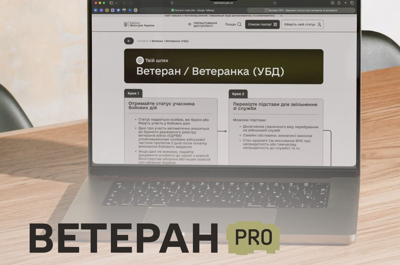 Уряд України на виконання доручення Президента України представив Ветеран PRO — державну цифрову платформу для ветеранів, ветеранок і їхніх родин, де зібрано всю інформацію про пільги, програми, послуги та можливості в одному місці. Проєкт реалізовано Міністерством у справах ветеранів України.