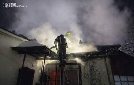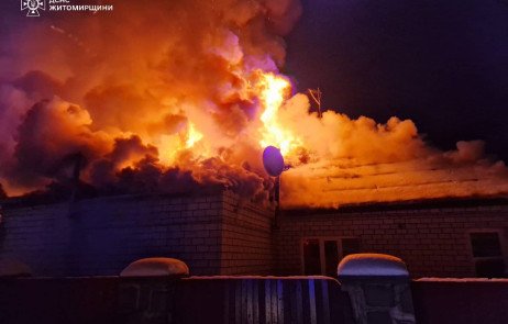 Після нічного обстрілу на Житомирщині рятувальники оперативно загасили пожежу