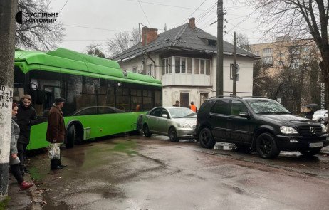 У Житомирі тролейбус перегородив дорогу через припарковані авто