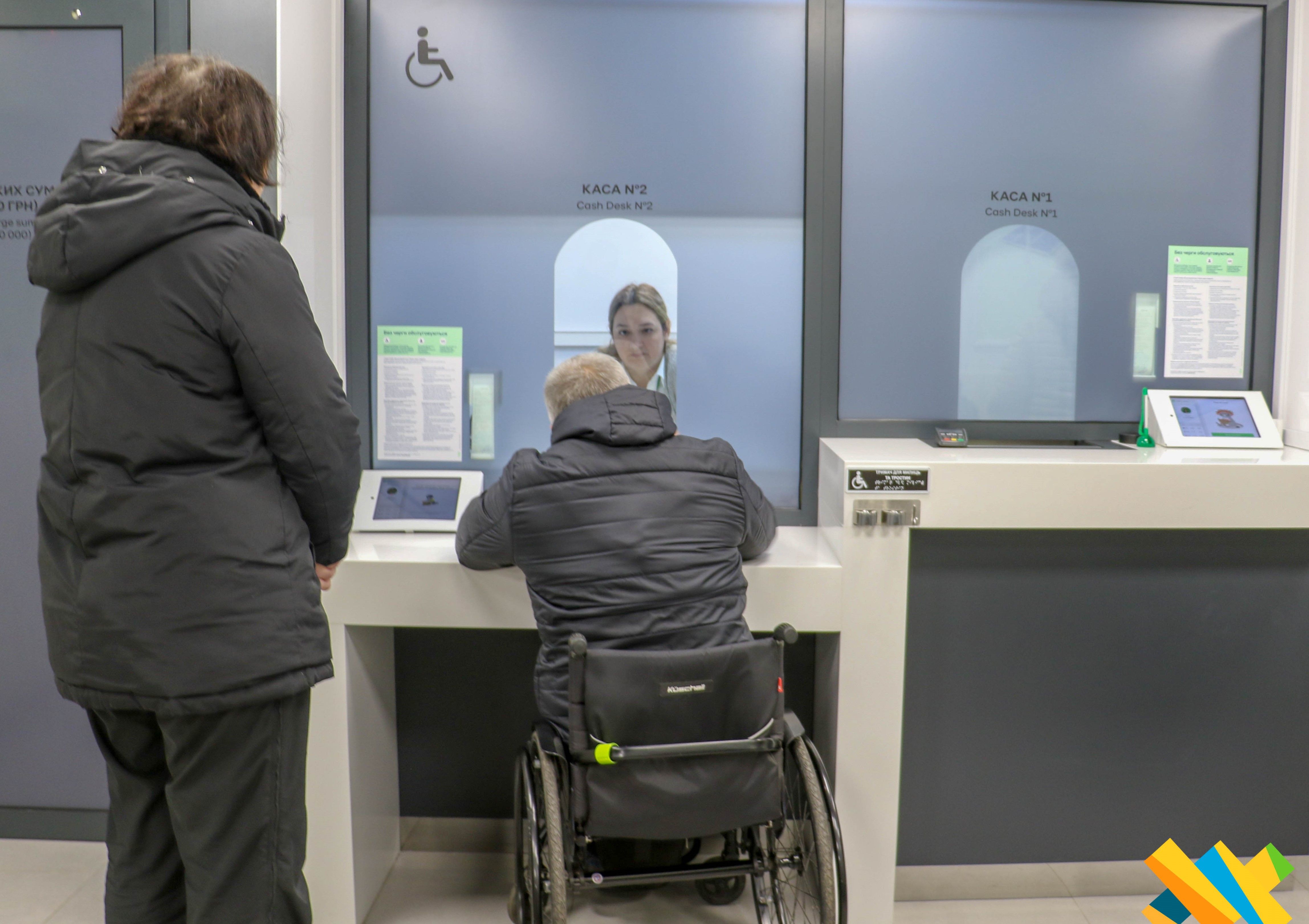 Фінустанова має власну Стратегію безбар’єрності й послідовно рухається в її напрямках. Доступність до продуктів та послуг банку — один із них. Вхідну групу у відділення обладнано зручним пандусом та широкими дверима. У залі працює універсальна касова кабіна, до якої легко під’їхати на кріслі колісному, а біля кас та в зонах самообслуговування передбачені тримачі для милиць і тростин. Для людей із порушенням зору нанесено тактильне та контрастне маркування. Вбиральня — простора та інклюзивна, зі спеціальними поручнями та системою виклику персоналу.