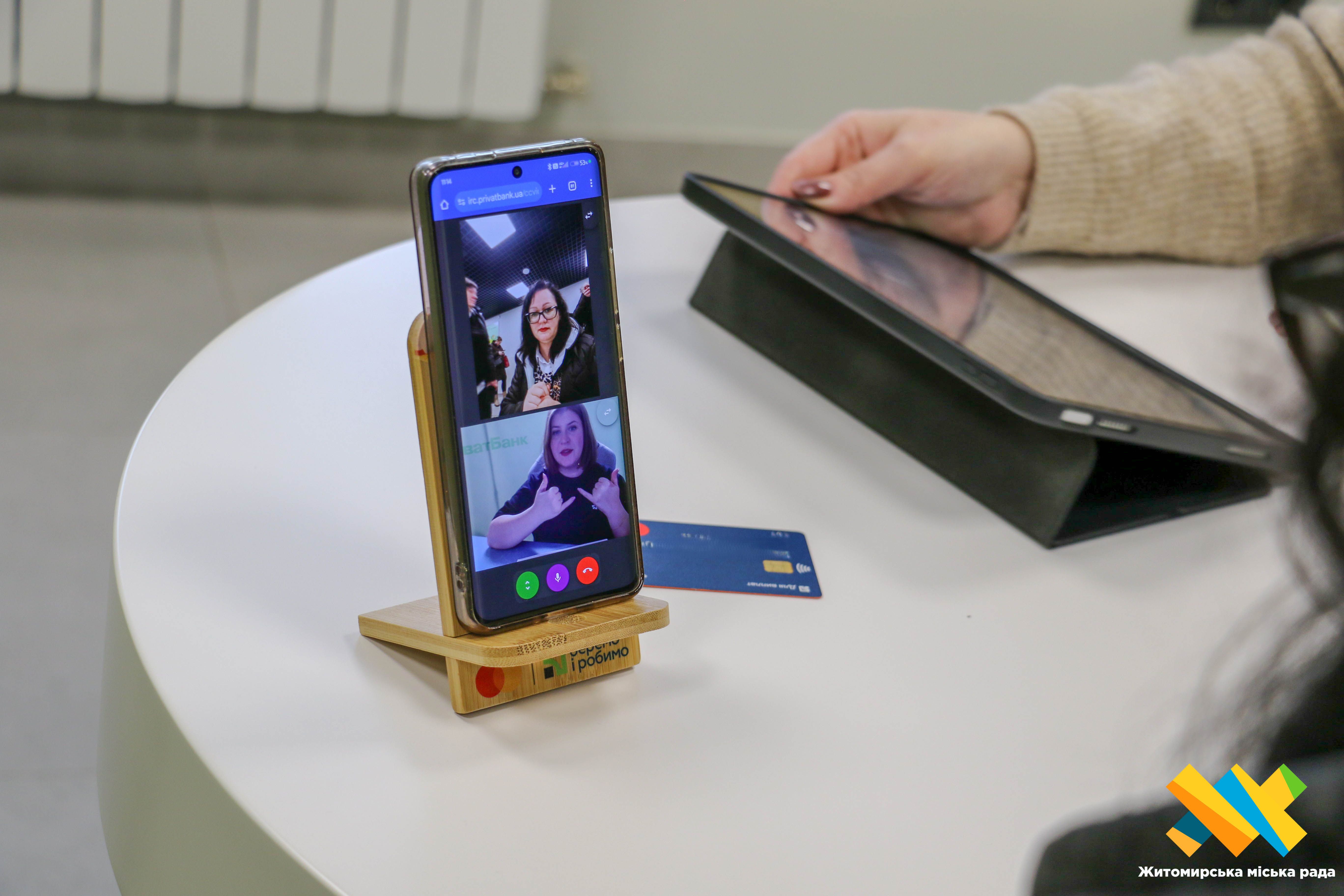 Рита Фурман отримує послугу в одному з житомирських відділень ПриватБанку. Пані Рита має порушення слуху, і для неї надзвичайно важливо, щоб працівники банку спілкувалися доступно та з повагою до її потреб.