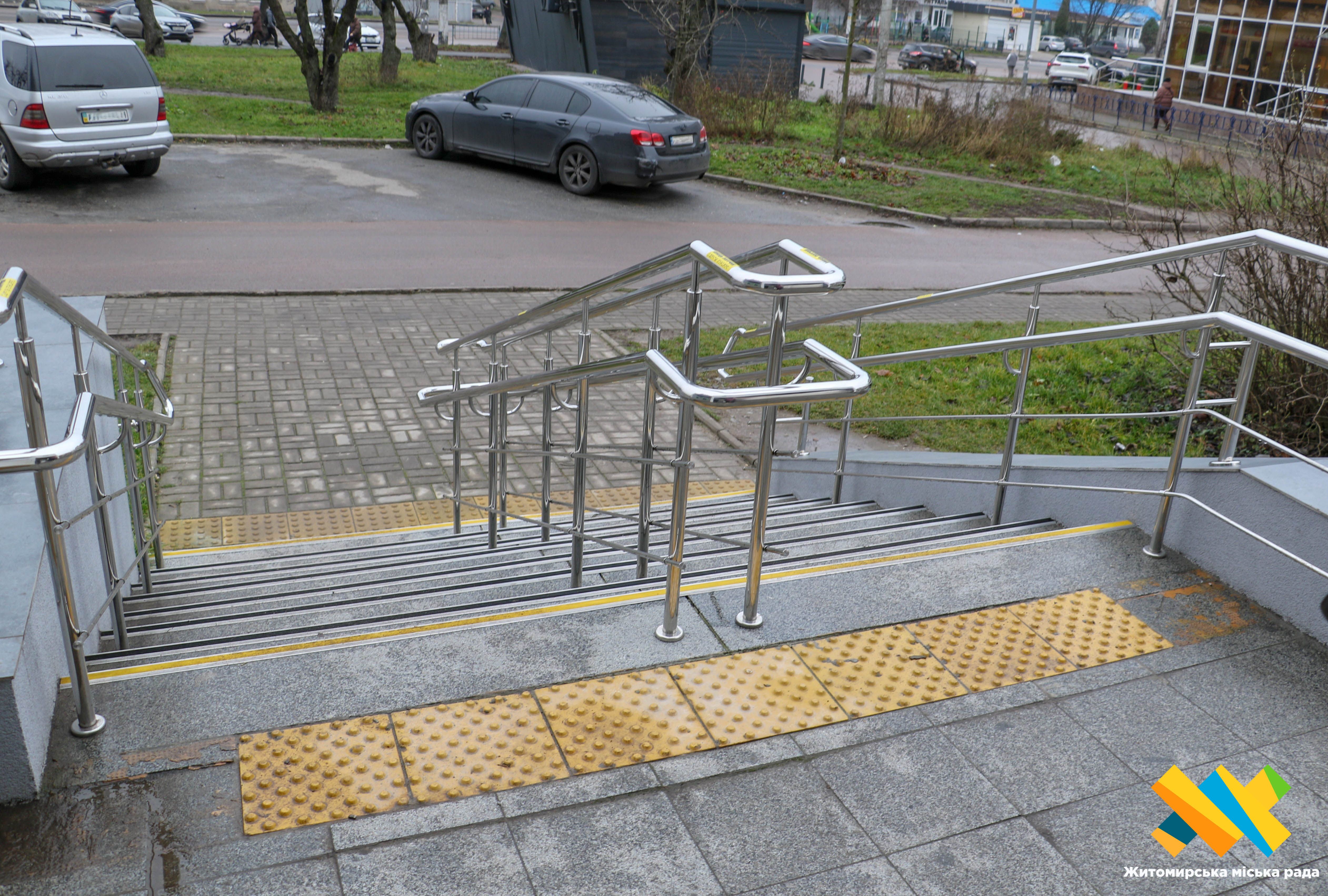 На вході до залу розміщена мемосхема зі шрифтом Брайля. Вона допомагає людині з порушенням зору орієнтуватися в просторі і одразу зрозуміти, де каса, де санвузол, де працює фахівець