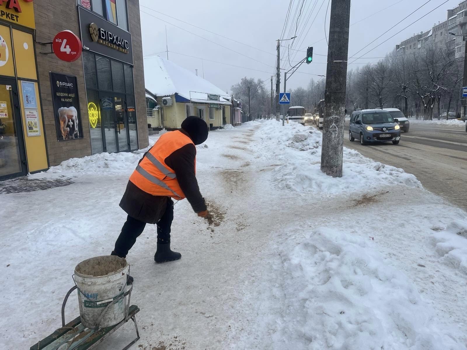 У місті тривають роботи з розчищення тротуарів від снігу та льоду.