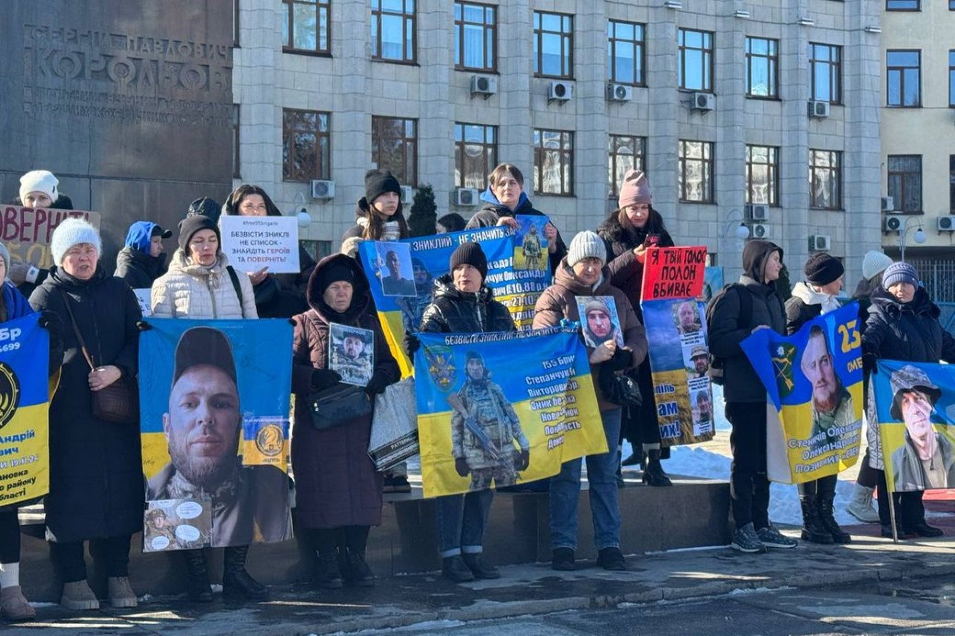 У Житомирі на площі імені Сергія Корольова рідні військовополонених та зниклих безвісти вийшли на чергову мирну акцію. Її мета — підтримати своїх рідних, які, захищаючи Україну від російського війська, або потрапили у полон, або про їхню долю досі нічого невідомо. Учасники акції тримали в руках тематичні плакати на підтримку бійців, прапори бригад, фото зниклих безвісти та полонених воїнів. Про це повідомляє Суспільне.