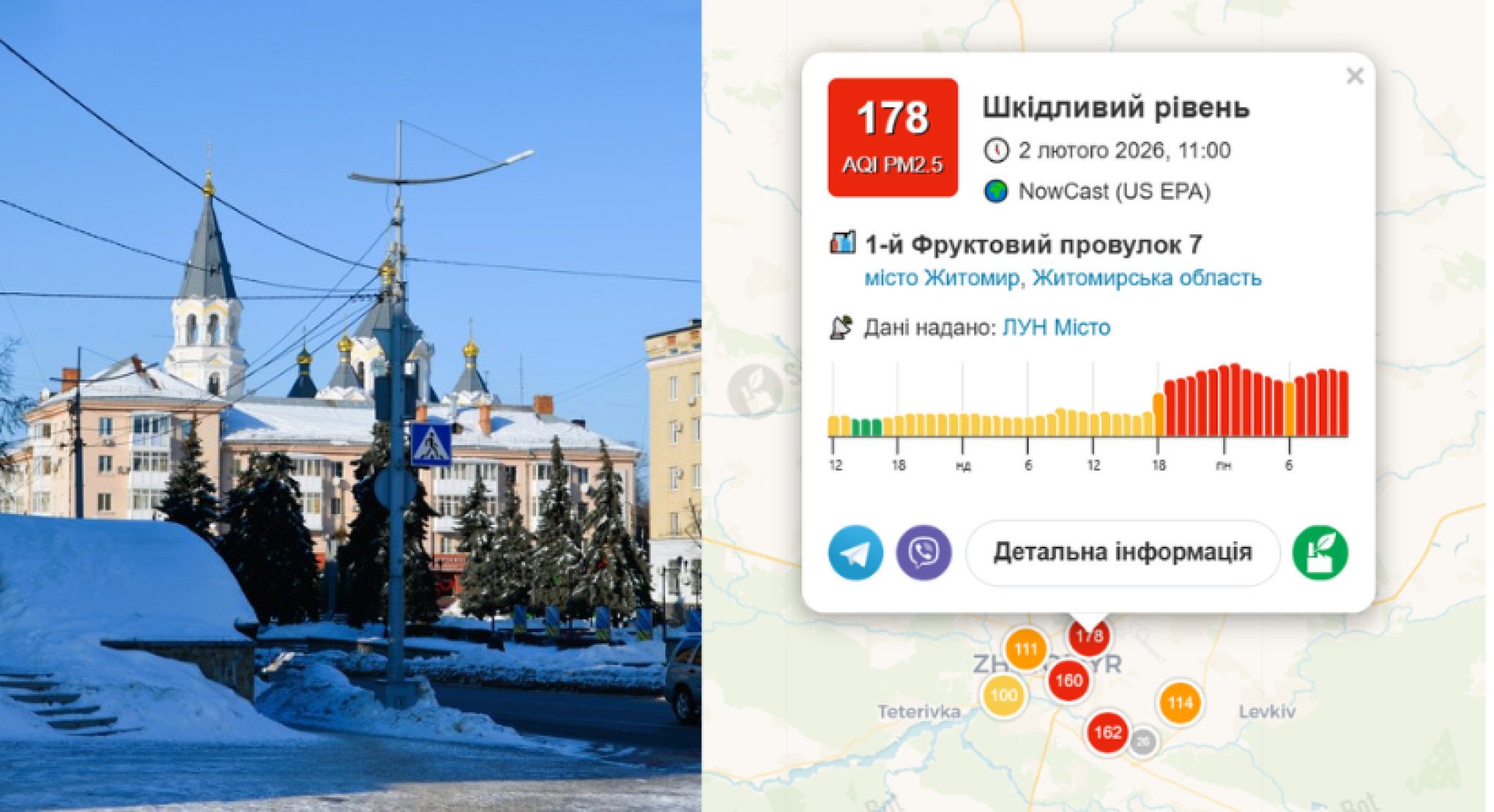 Схожа ситуація була кілька тижнів тому. 19 січня У Житомирі повітря досягло рівня «дуже шкідливе».