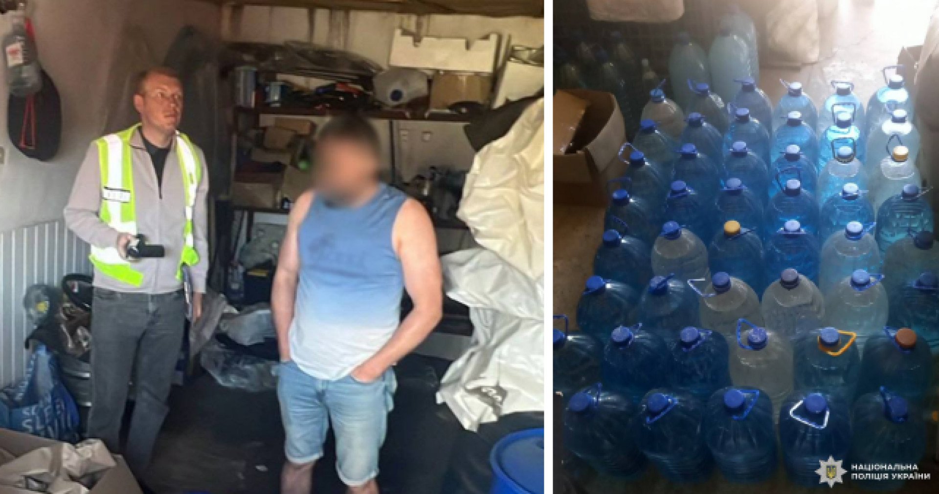 У липні 2025 року правоохоронці припинили незаконну діяльність групи та провели низку обшуків. З гаражних приміщень вилучили 62 пляшки по 1,5 л з бурою рідиною. Там же виявили ємності з прозорою рідиною: понад 200 пляшок – по 1,5 л, 75 пляшок – по 10 л, понад десяток – по 5 л, та ще кілька неповних пляшок різної місткості. Ще частину «горілки» та «коньяку» у тарах різного об’єму вилучили з місць проживання та автомобіля співучасників.