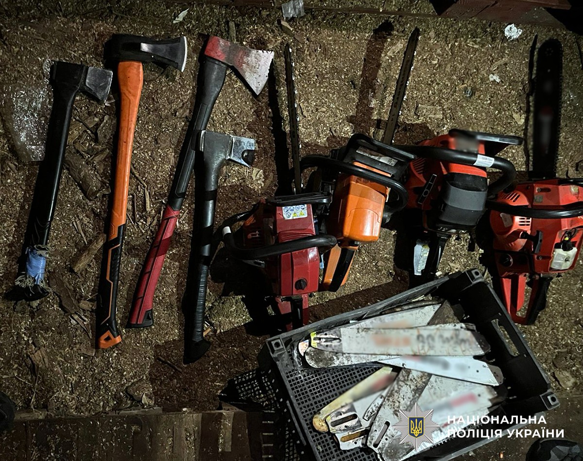 Під час проведення слідчих дій поліцейські вилучили незаконно здобуту деревину, бензопили та сокири. Все скерували на експертні дослідження. За попередніми підрахунками, сума завданих лісгоспу збитків становить 224 648 гривень", - йдеться в повідомленні.