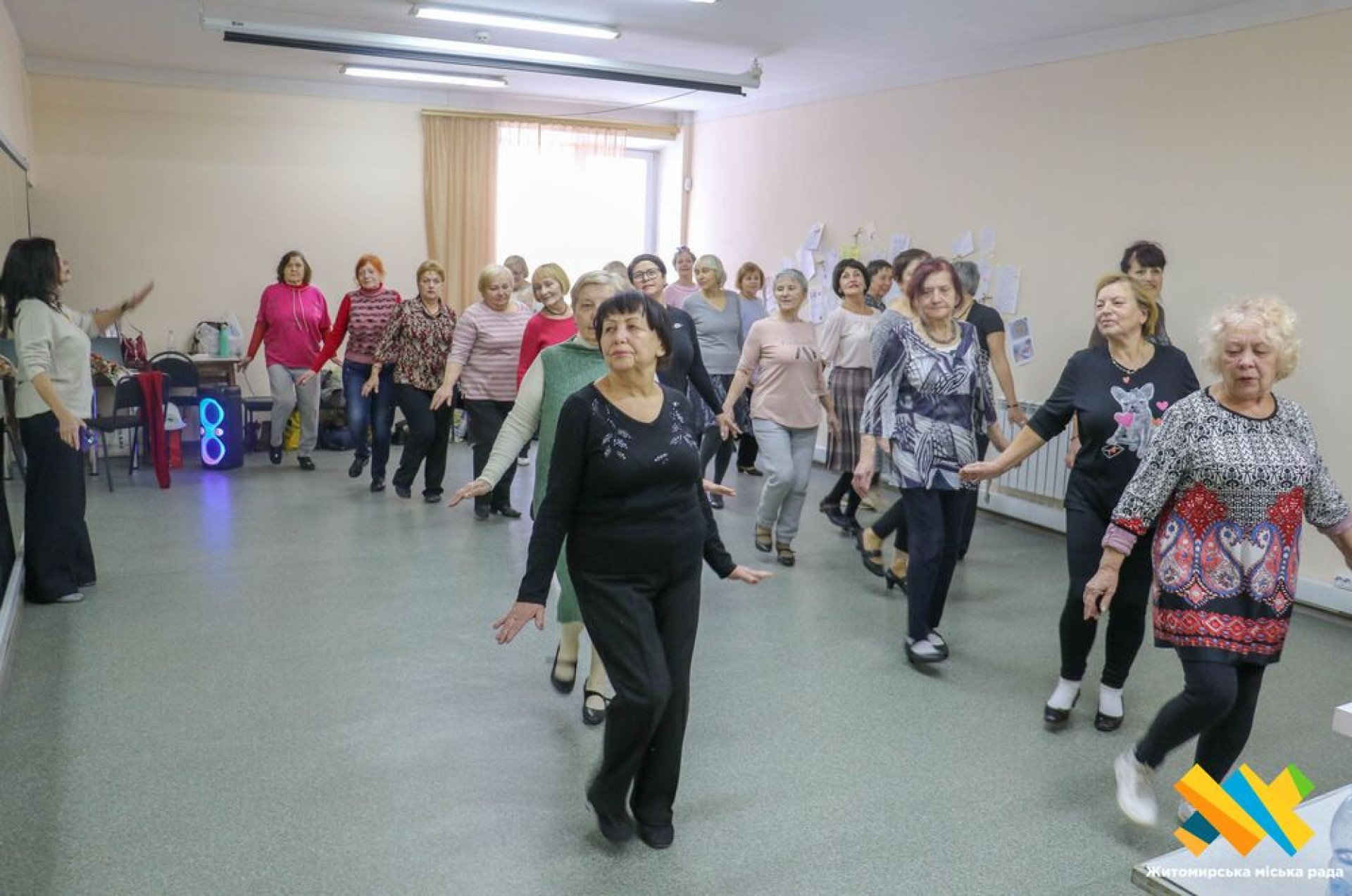 «Спочатку «Університет для людей поважного віку» створювався, щоб люди відкривали свої можливості, якщо пішли на пенсію та почали сумувати. Під час війни ми охопили ще й внутрішньо переміщених осіб. У нас проводяться ретрити, танцювальна терапія... Люди, які долучаються до наших занять, можуть релаксувати, віднаходити себе, емоційно розвантажитися. Коли людина танцює, вона має вивчити всі рухи, думати про музику... І вона забуває про свій біль. Також тут можна поспілкуватися, поплести сітки, обмінятися рецептами», — говорить Наталія Хомчук, керівниця танцювального клубу «Ретро».