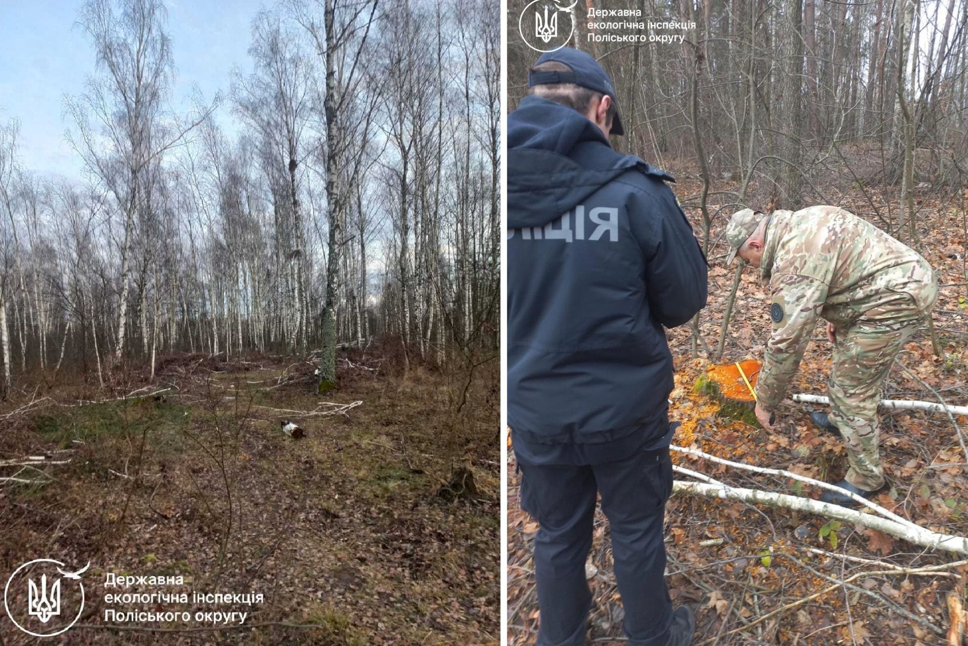 Державні інспектори з охорони навколишнього природного середовища Поліського округу під час патрулювання території ПЕК №1 у межах Березівської територіальної громади зафіксували факт незаконної порубки 158 сироростучих дерев порід вільха, береза, сосна та осика. На момент обстеження місця події особи, причетні до правопорушення, були відсутні.