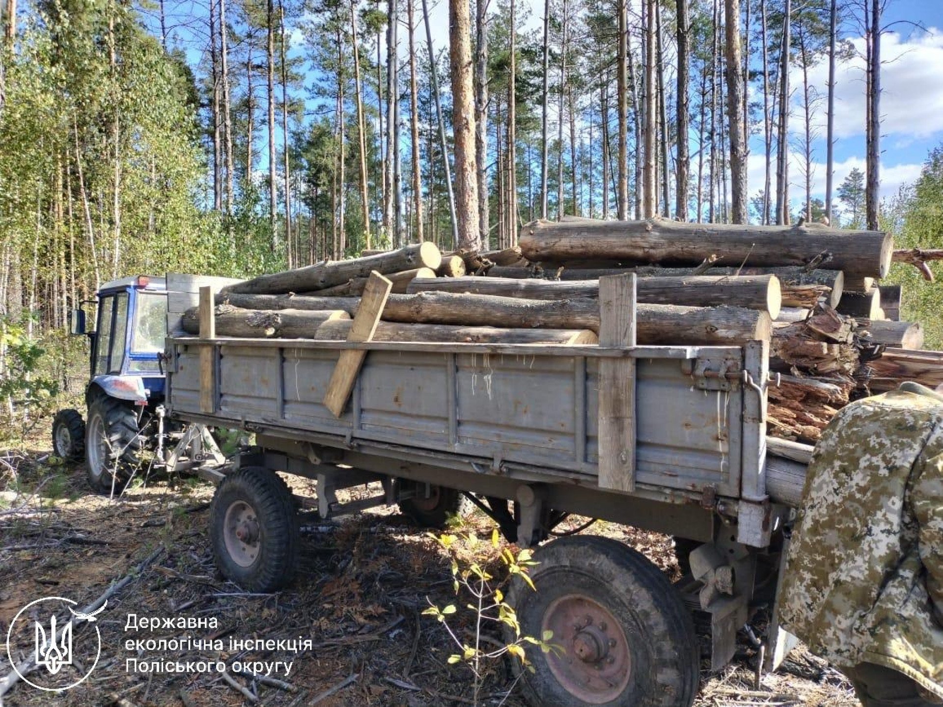 "26 вересня 2025 року державними інспекторами з охорони навколишнього природного середовища Поліського округу під час проведення заходів державного нагляду (контролю) у сфері охорони довкілля, спільно з працівниками лісової охорони ДП «Малинський лісгосп АПК», у лісовому масиві Ворсівського лісництва поблизу села Облітки було виявлено громадянина, який за допомогою бензопили здійснив самовільну порубку трьох сироростучих та одного сухостійного дерева породи сосна", - йдеться в повідомленні.