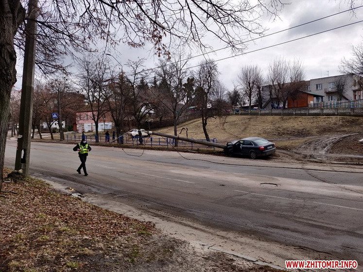 «За садочком № 30 автомобіль звалив стовп. На місці є поліція», – розповіла житомирянка.