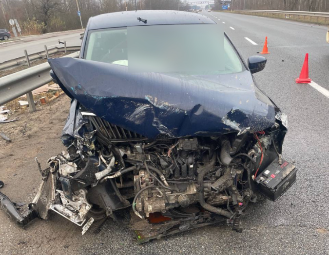 "Учора вранці, на 156 км автодороги М-06 Київ — Чоп сталася ДТП без потерпілих. Водій автомобіля Skoda не був уважним та наїхав на колесовідбійник, а потім по інерції зіштовхнувся з вантажівкою MAN.