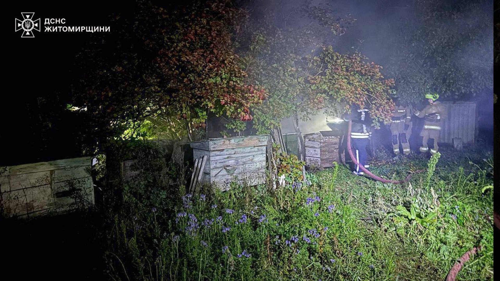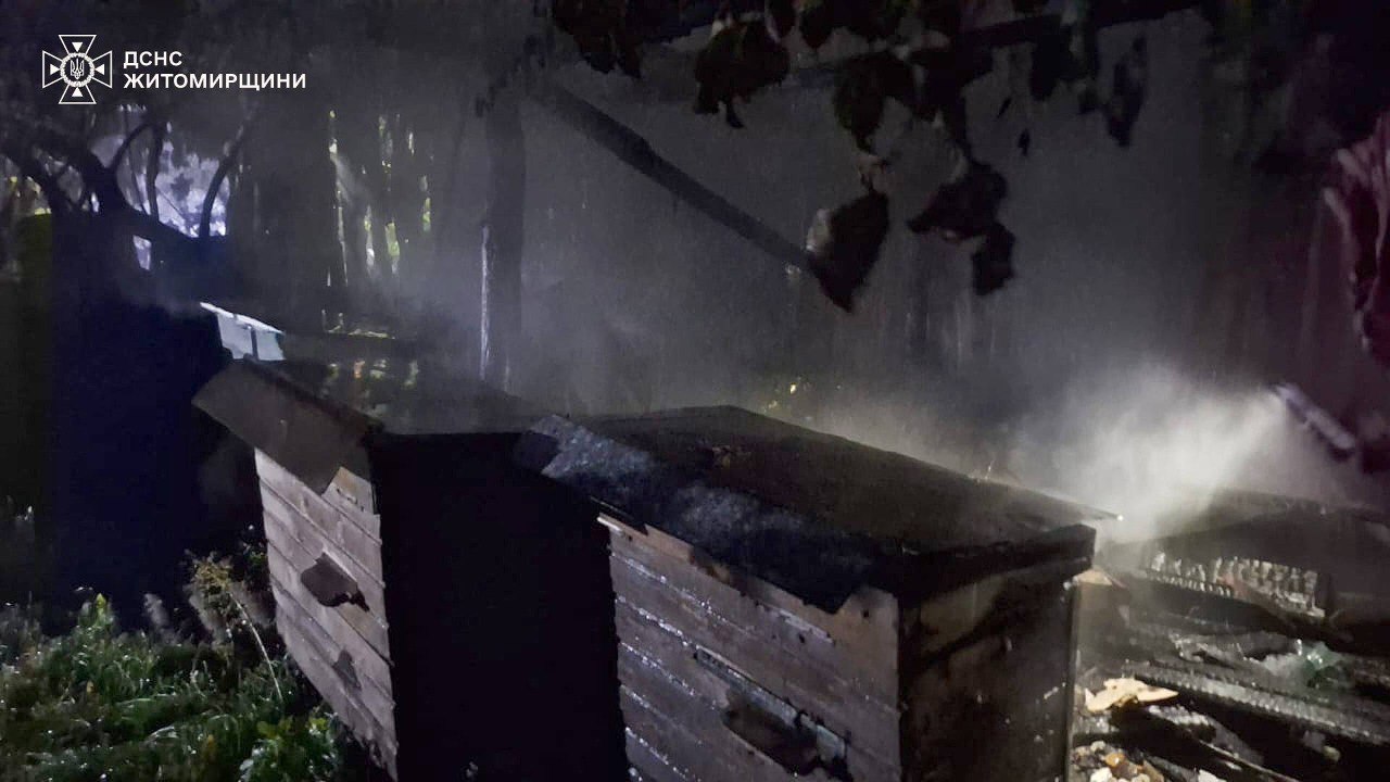 "Учора ввечері в Андрушівці загорілися вулики для бджіл на приватній пасіці. Вогонь вже охопив 4 дерев’яні конструкції і кожна секунда мала значення — полум’я могло знищити все.