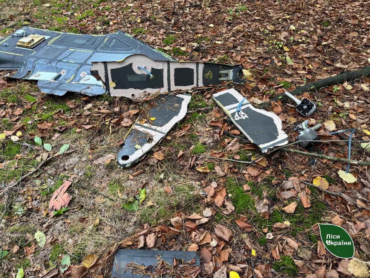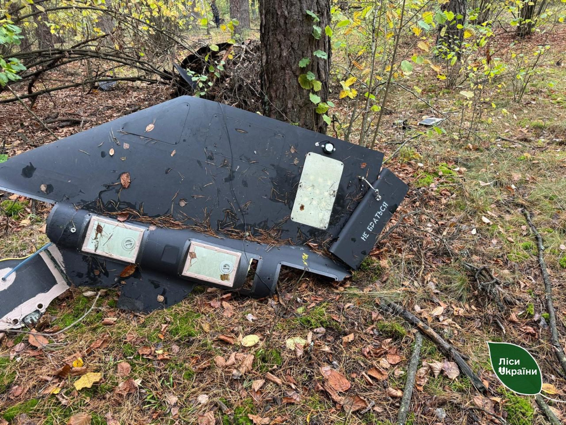 Під час обходу у Коростенському надлісництві ДП «Ліси України» на Житомирщині лісова охорона виявила уламки Шахеда після дронової атаки, що сталася вночі.