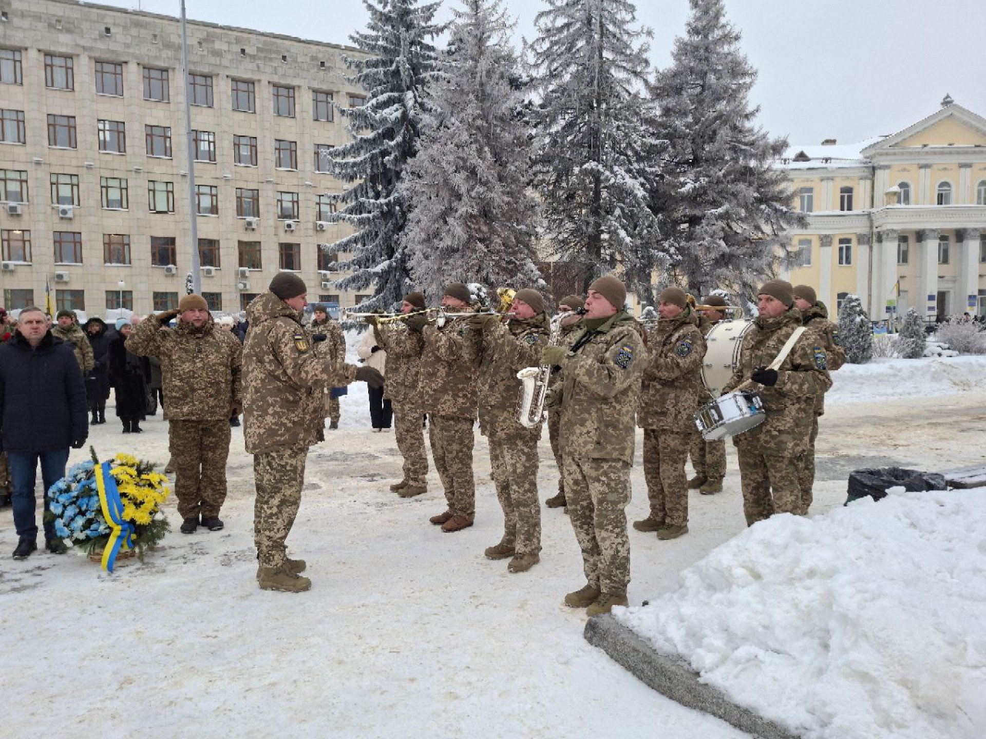 Живий ланцюг стояв по обидві сторони вулиці з символікою в руках, а курсанти Житомирського військового інституту проносили велишезний Державний прапор.