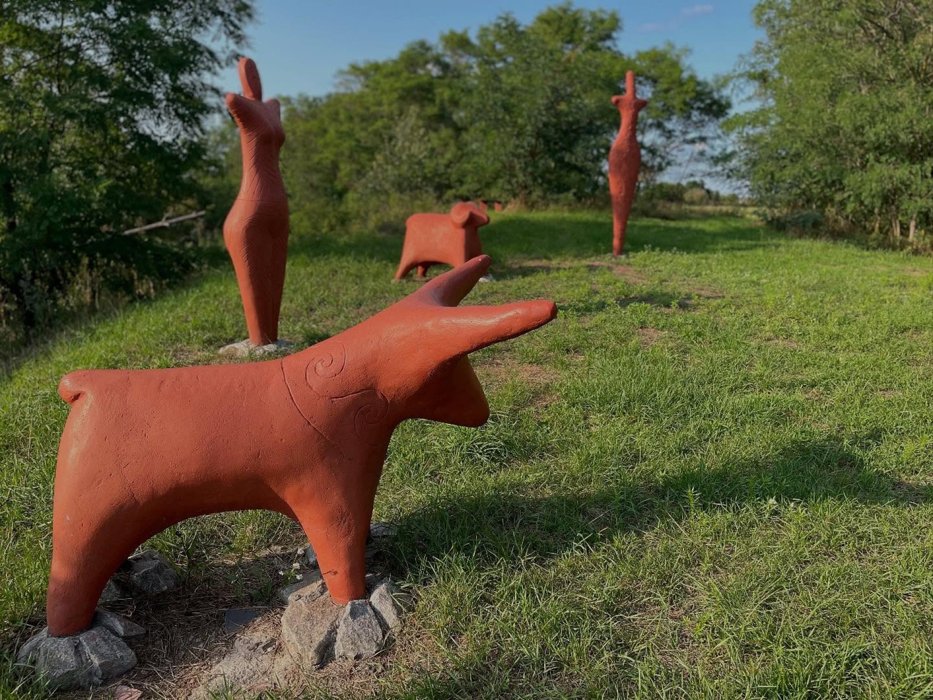 Ці монументальні роботи створені сучасним скульптором Олексієм Марковським та органічно вписані в мальовничий ландшафт пагорба, відкриваючи фантастичні краєвиди.