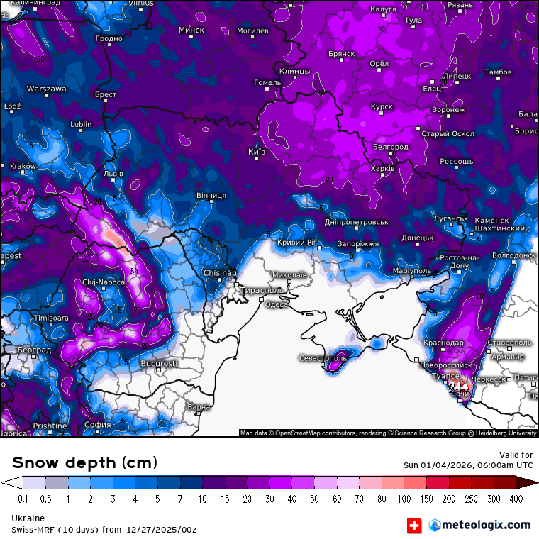 У неділю, 4 січня, атмосферні фронти стануть причиною помірних, місцями значних опадів на Лівобережжі України. Тут пройде сніг, мокрий сніг, на півдні із дощем. У західній частині очікується невеликий сніг. На дорогах зберігатиметься ожеледиця. Вітер переважно західного напрямку, 7 – 12 м/с. Температура повітря протягом доби коливатиметься в діапазоні -4...-9 °С, у південних та південно-східних областях дещо тепліше: -4...+1 °С.