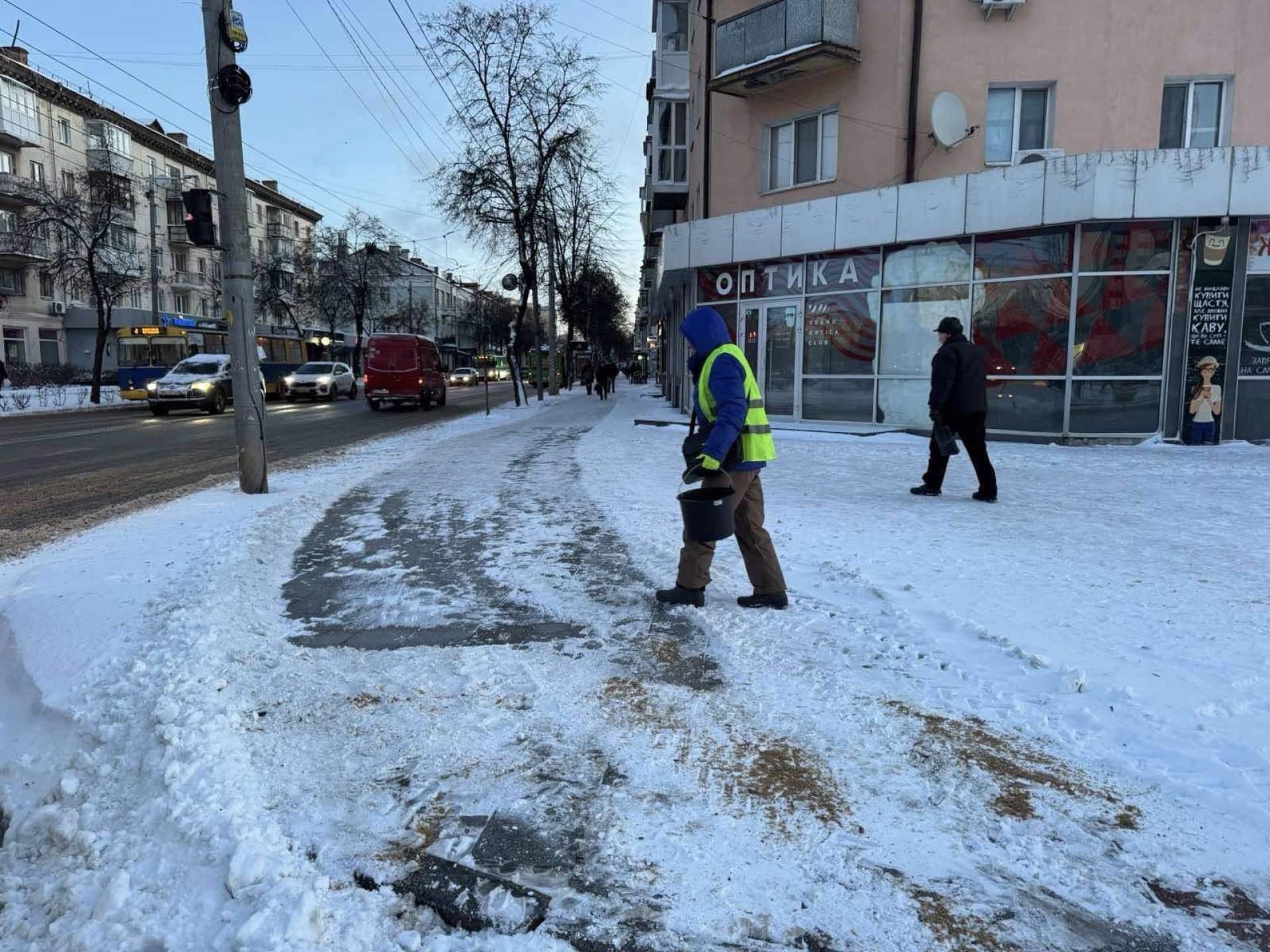 "Комунальні служби працюють безперервно, оперативно реагуючи на погодні умови та стан вулиць. Для обробки проїжджих частин і зупинок громадського транспорту в нічний час було залучено 22 одиниці спецтехніки КП «Управління автомобільних шляхів».
