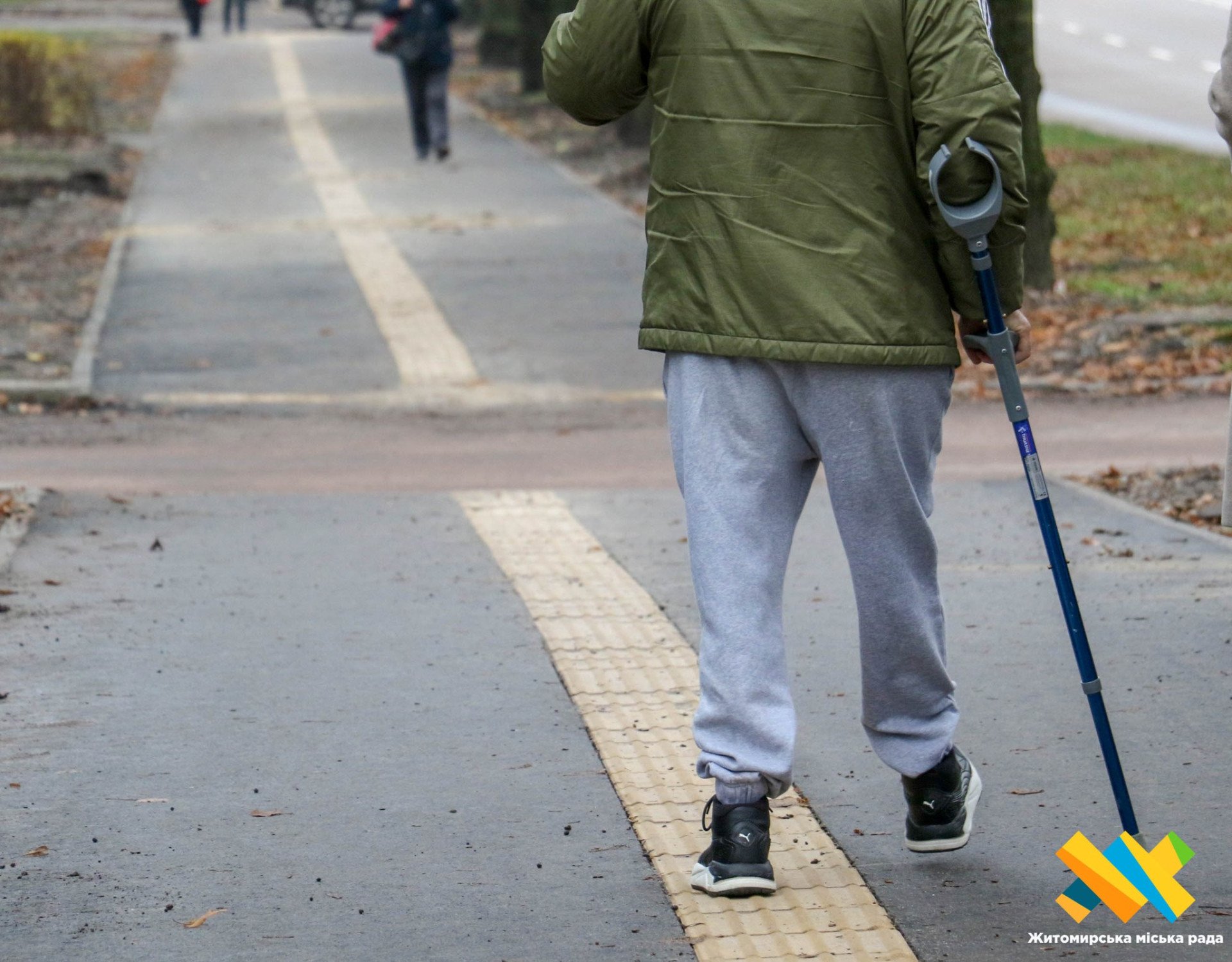 У Житомирі нині облаштовують безбар’єрний маршрут по вулиці Вітрука. Його довжина — понад кілометр. Уже встановлено сучасну зупинку громадського транспорту з пониженим тротуаром, облаштовано переходи з пониженнями, встановлюються світлофори з озвученням. Уздовж тротуарів прокладено тактильну плитку, щоб люди з порушенням зору могли безпечно пересуватись.