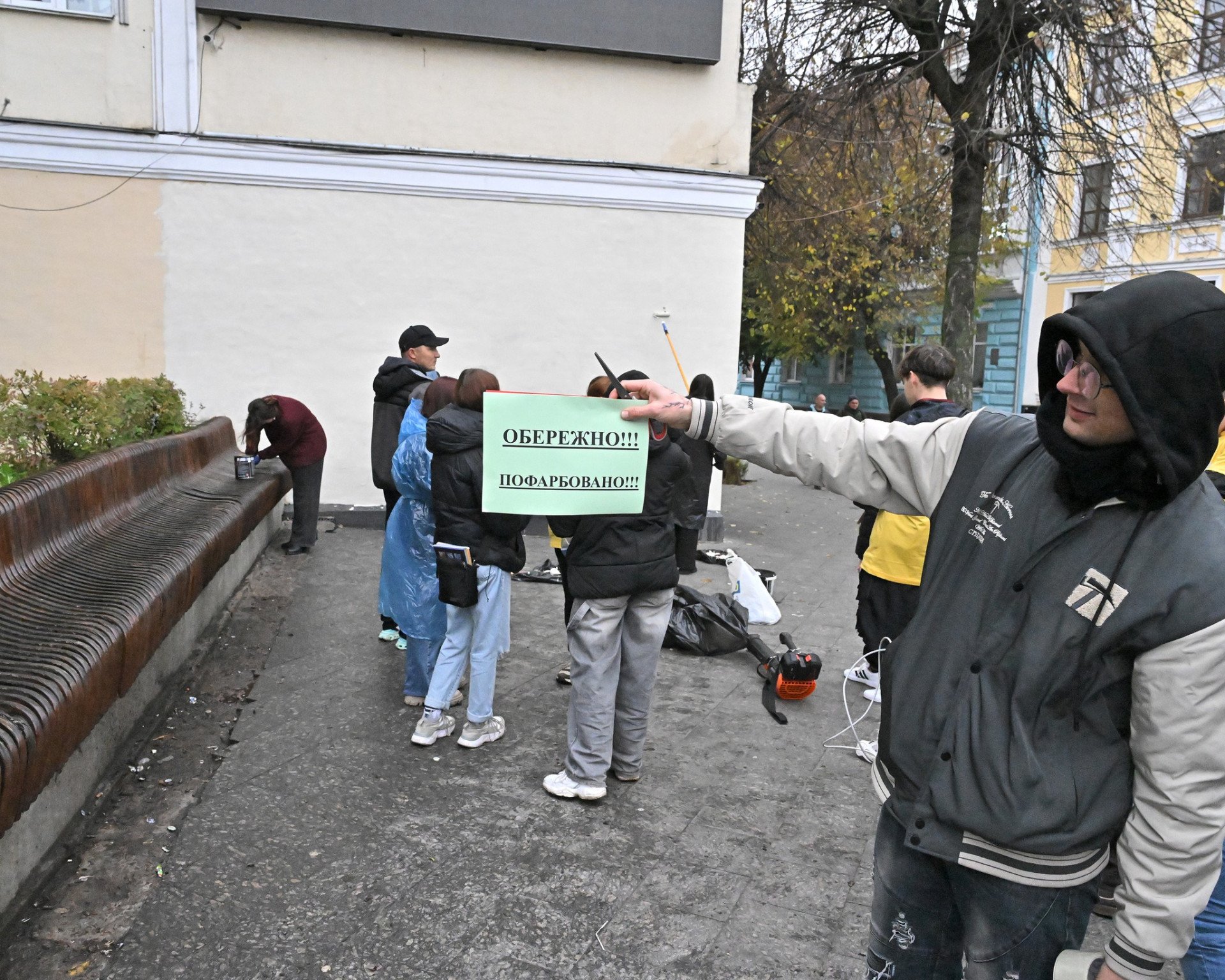 22 жовтня на Михайлівській слухачі та слухачки Школа Місцевого Самоврядування Житомир пофарбували стіну та вичистили відому усім лавку.