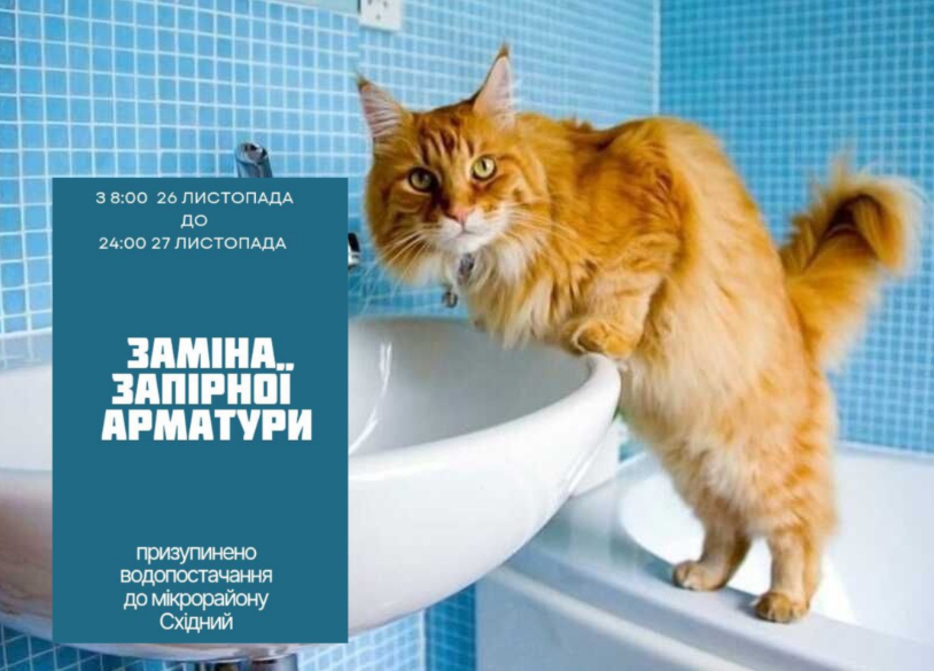 З 8:00 26 листопада до 24:00 27 листопада для проведення технічного переоснащення водопровідних камер буде припинено водопостачання за такими адресами: