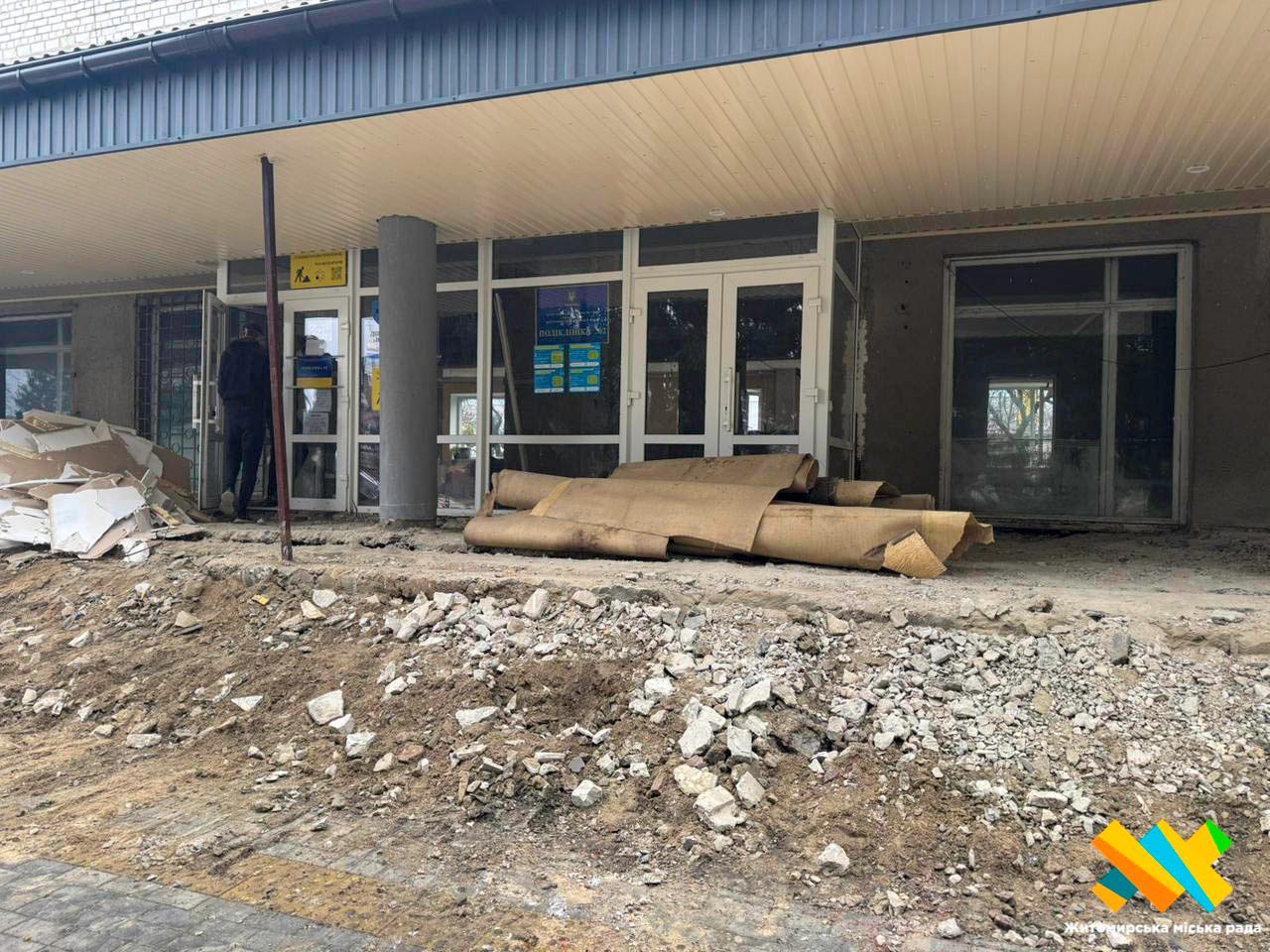 У Житомирі триває реконструкція частини приміщень та вхідної групи поліклініки № 2 КП «Лікарня № 1» Житомирської міської ради на площі Польовій, 2.