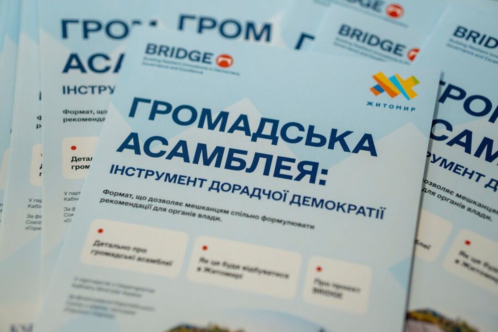 Громадська асамблея відбулася завдяки співпраці Житомирської міської ради й науковців проєкту BRIDGE з Київської школи економіки (KSE) і Технічного університету Берліна (TU Berlin). Вона є прикладом ефективної співпраці в межах наукового співробітництва між Європейським Союзом та Україною.